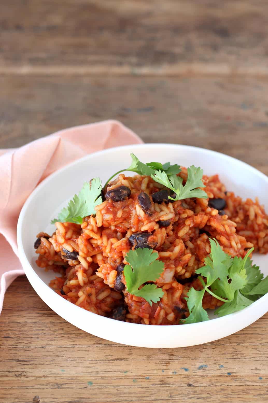 - Serveertip: Deze Spaanse rijst met tomaat en zwarte bonen smaakt lekker bij tal van dingen. Houd het simpel met een gebakken (spiegel)ei of een frisse salade. Of bak er een stukje vlees of witvis bij.
