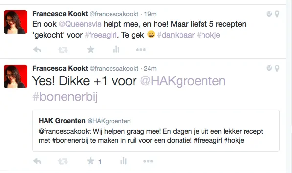 Vlak nadat ik IEDEREEN die mij en Free a Girl gesteund heeft (op wat voor manier dan ook) enorm heb bedankt, jullie zijn kanjers!