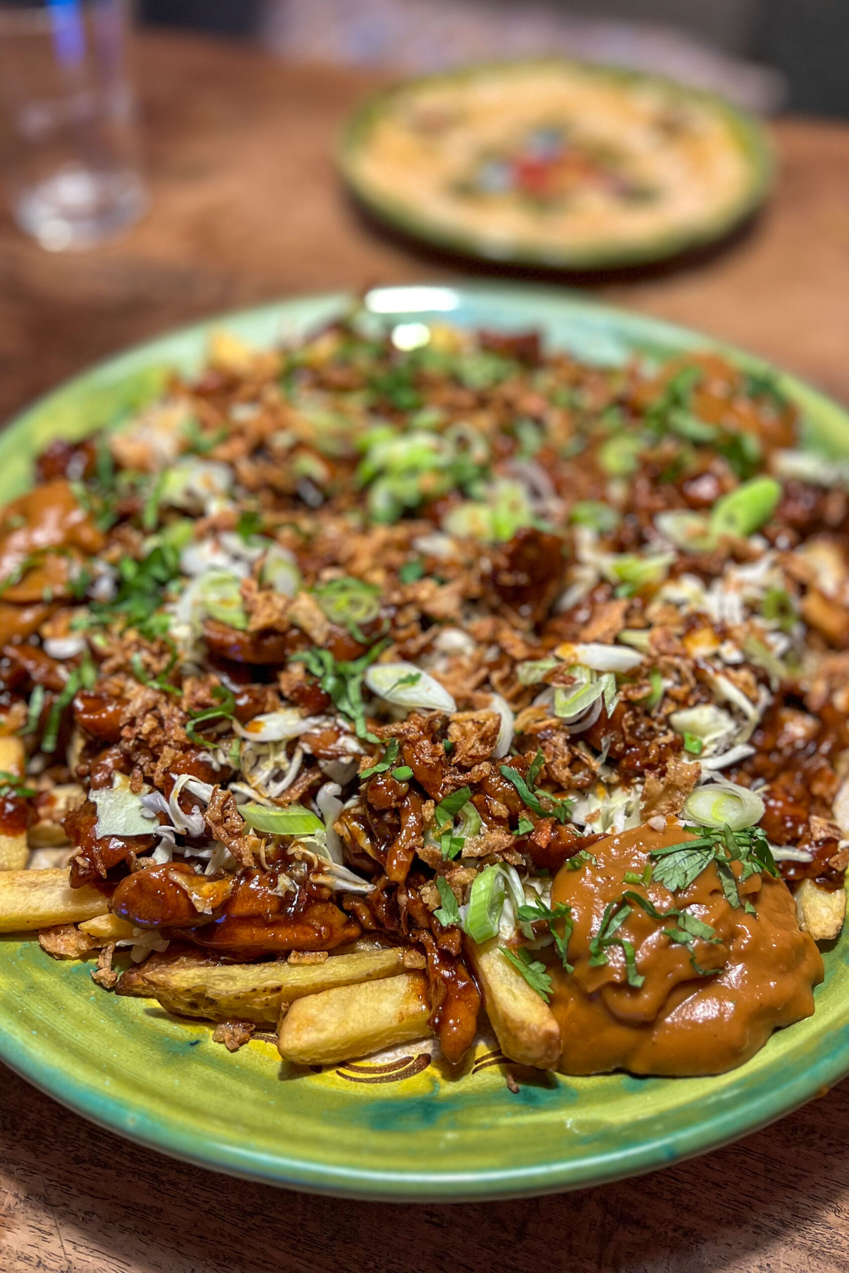 Dus 18 variaties later… Nee grapje. Maar het waren er wel 4, haha. Ik ging door met ontwikkelen en maakte uiteindelijk een hele lekkere kip ketjap als basis die perfect was qua smaak en sausgehalte. We ontdekten wat onze favoriete frietjes waren ervoor en hoe we de toppings het beste vonden combineren. En er moest écht pindasaus bij, dat maakt het helemaal af.