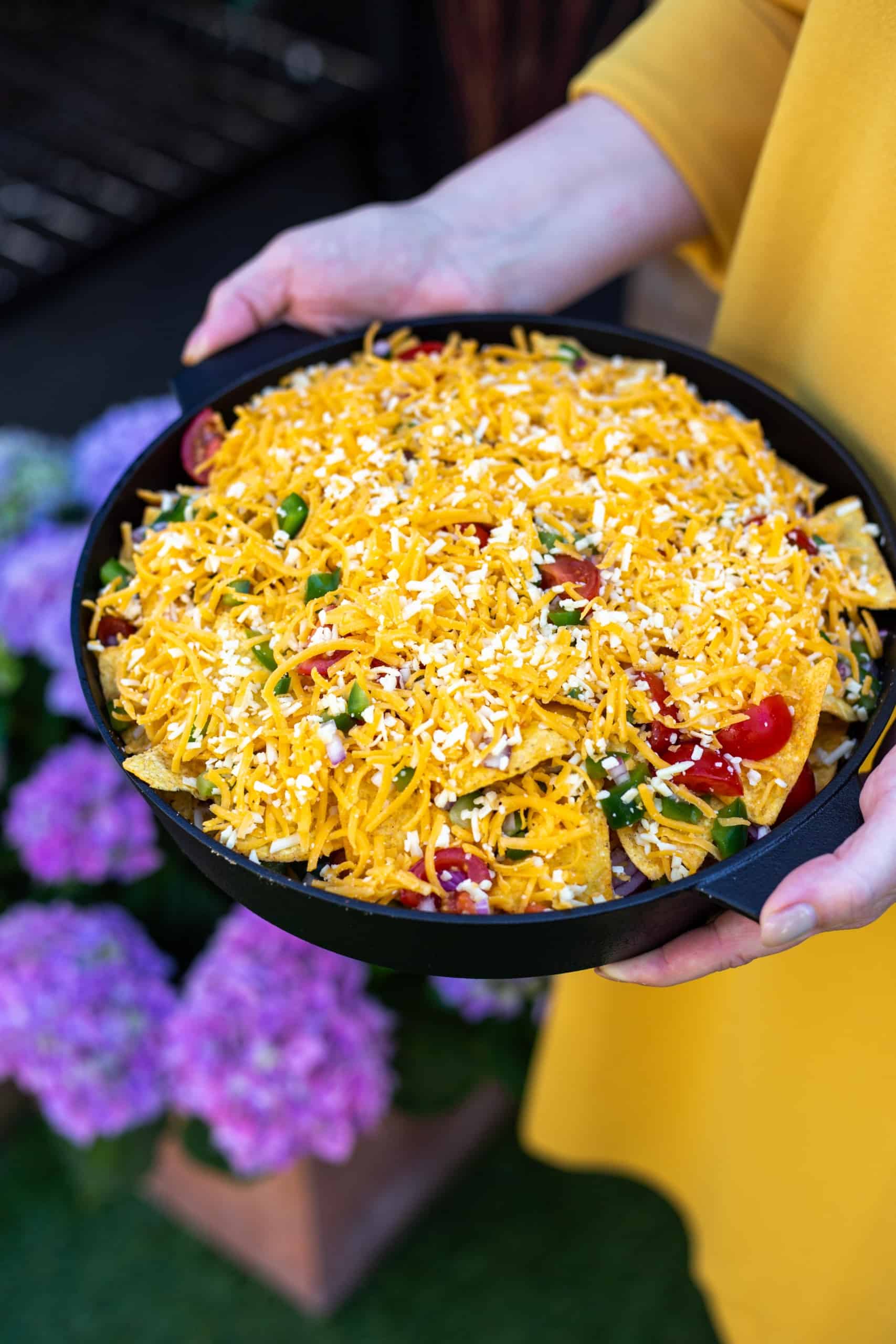 Loaded nacho’s als borrelhapje in het weekend sla ik nooit over! Maar wist je dat je die ook perfect op de barbecue kunt maken? En dat de loaded nacho’s dan nog lekkerder worden? Vandaag heb ik er een heel makkelijk recept ervoor wat je in ieder soort barbecue kunt maken, mits je zorgt voor indirect vuur en een gietijzeren skillet of andere hittebestendige schaal die in je barbecue past. En je hebt een deksel nodig die dicht kan, niet geheel onbelangrijk.