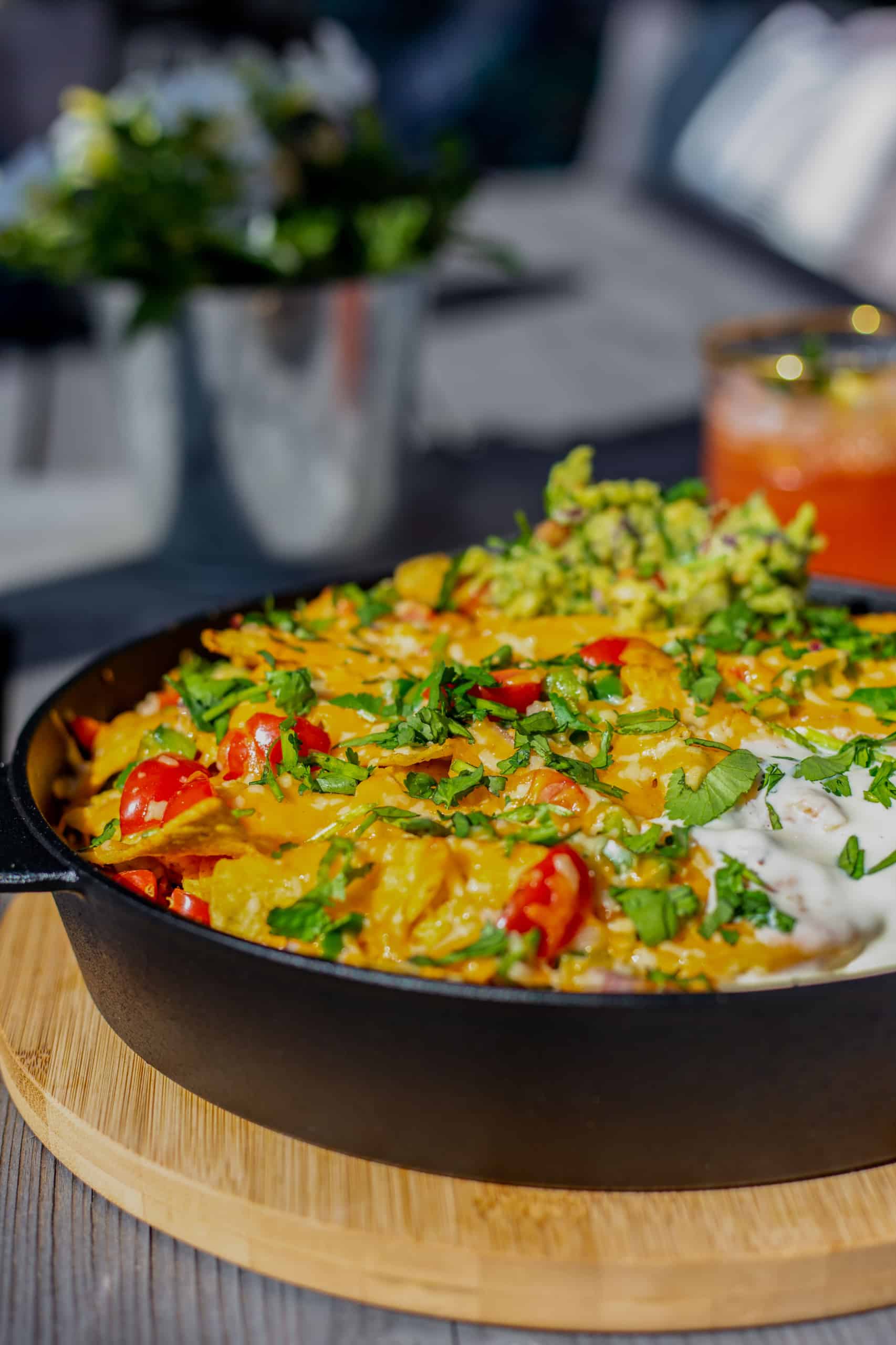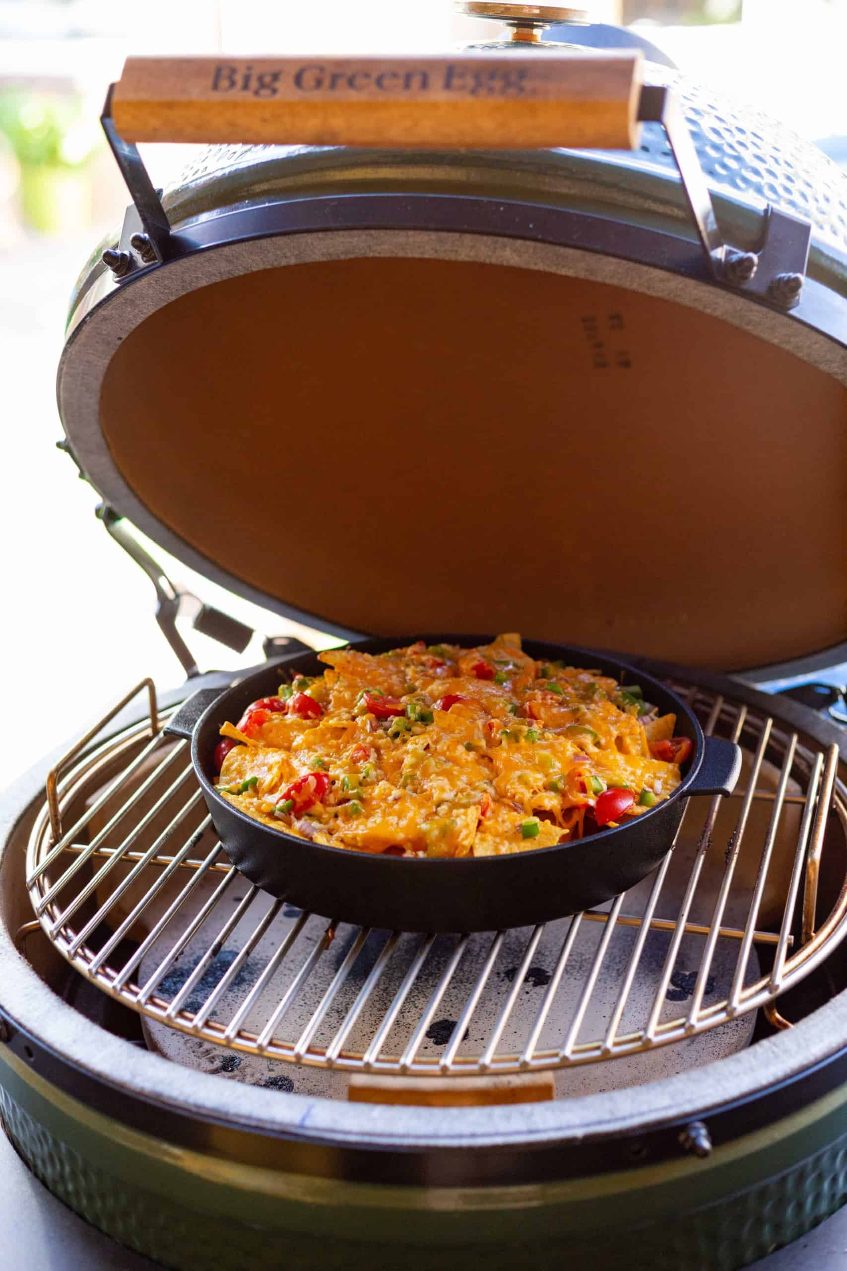 - Zet je schaal of skillet in de barbecue (op 180 graden, indirect vuur) en sluit het deksel. Laat de loaded nacho's circa 15 - 20 minuten staan tot de kaas helemaal mooi gesmolten is.