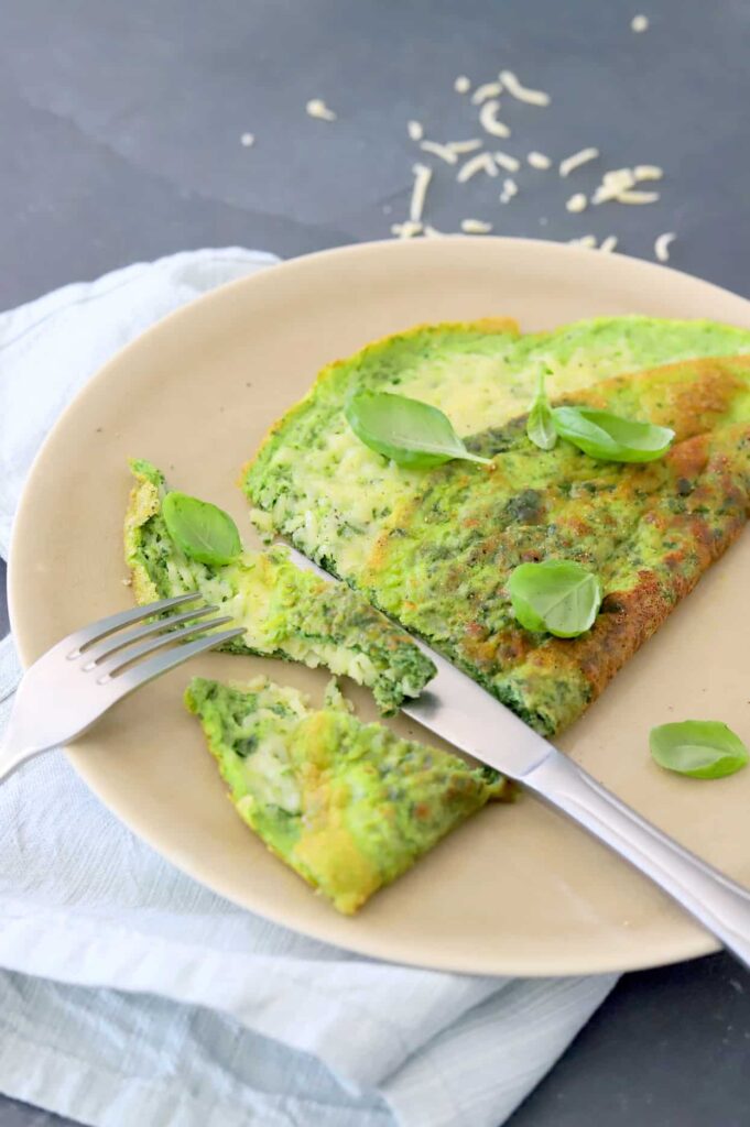 Ik bak de laatste tijd nogal veel omeletjes, het is een fase!, en vooral deze luchtige omelet met spinazie en belegen kaas is favoriet in huize Kookt. Ideaal als ik nog een kliekje spinazie in huis heb en soms voeg ik er ook nog andere groenten aan toe. Denk aan sjalot, wortel of lente-ui bijvoorbeeld. Maar zelfs groene asperges en broccoli heb ik al gebruikt.