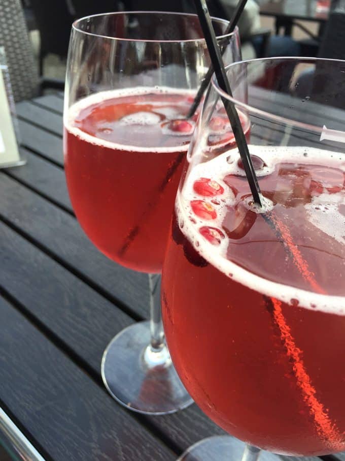 Van al dat geslenter en gehap krijg je enorme dorst. Berry de Cranberry tipte ons op Twitter dat Badhotel Bruin een heel speciaal drankje voor ons klaar had staan. Hier hebben we, op het terras in het laatste straaltje zon, een overheerlijke Cranberry Hugo gedronken. Die maak je geheel volgens het originele Hugo-recept, maar dan met een klein vleugje cranberrysiroop als toevoeging en wat verse cranberry’s. Naast dat het er gezellig uitziet, smaakt het ook verdraaid goed!