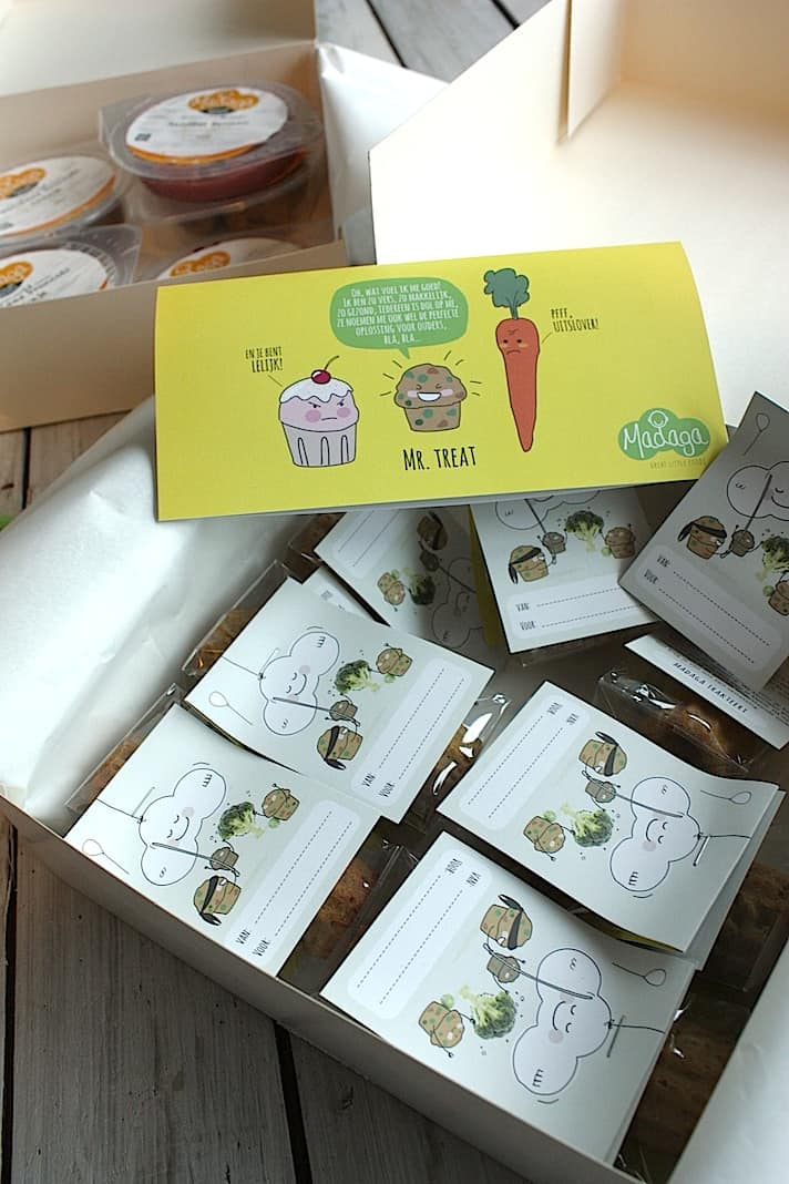 We kregen maar liefst 3 dozen vol met producten van Madaga thuis afgeleverd. Ik zag Jessey de komende 3 weken alleen maar Madaga eten, maar dat viel mee. Ze hadden namelijk iets heel leuks extra toegevoegd. Kom ik zo op terug!