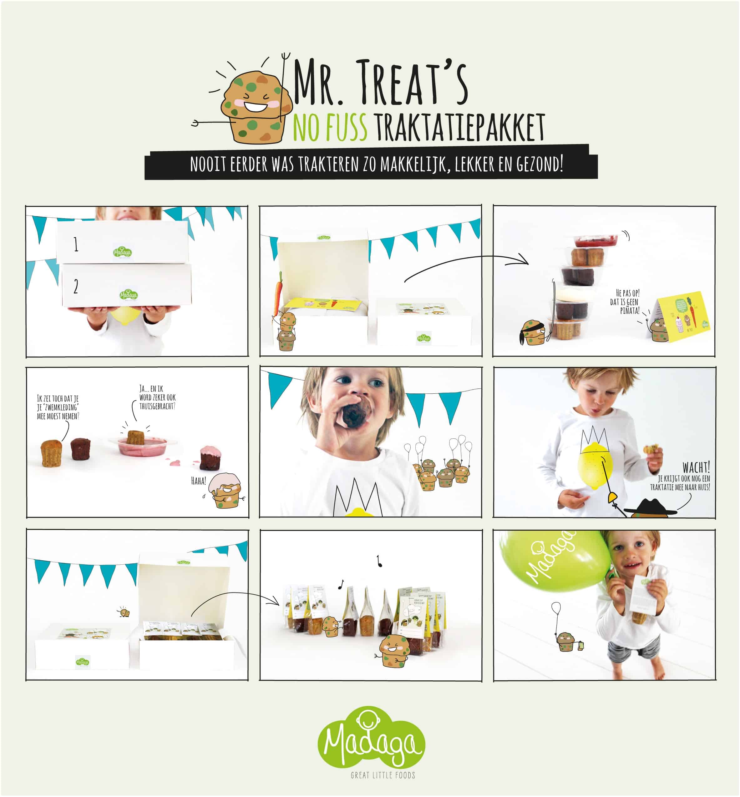Nog even over dat ‘leuke’ wat Madaga in onze goodybag had gestopt. Dit was het Mr. Treat’s No Fuss traktatiepakket en die vond ik me toch leuk! 12 speculaas-broccoli cakejes die je kunt versieren. En daarnaast nog 12 cakejes die per stuk zijn verpakt en die je kunt uitdelen. De zak met ballonnen maakt het traktatiepakket compleet.