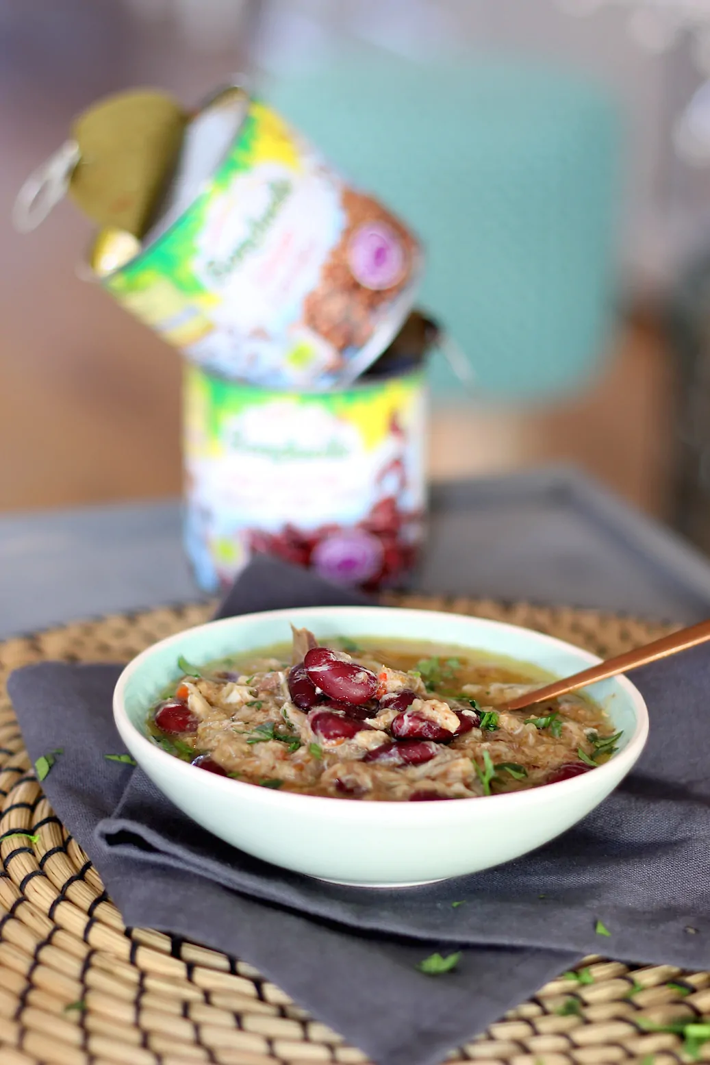Deze makreelsoep met bonen is super makkelijk te maken en was ook nog eens echt heel lekker. Een stevige maaltijdsoep is het waaruit blijkt dat de combinatie van makreel en bonen een hele goede keuze zijn, eigenlijk is het een soort erwtensoep. Maar dan met vis! Heerlijk voor de lunch, maar zou ook prima als avondmaaltijd kunnen. Dan neem je gewoon twee kommen en misschien wat brood erbij om lekker erin te dopen.