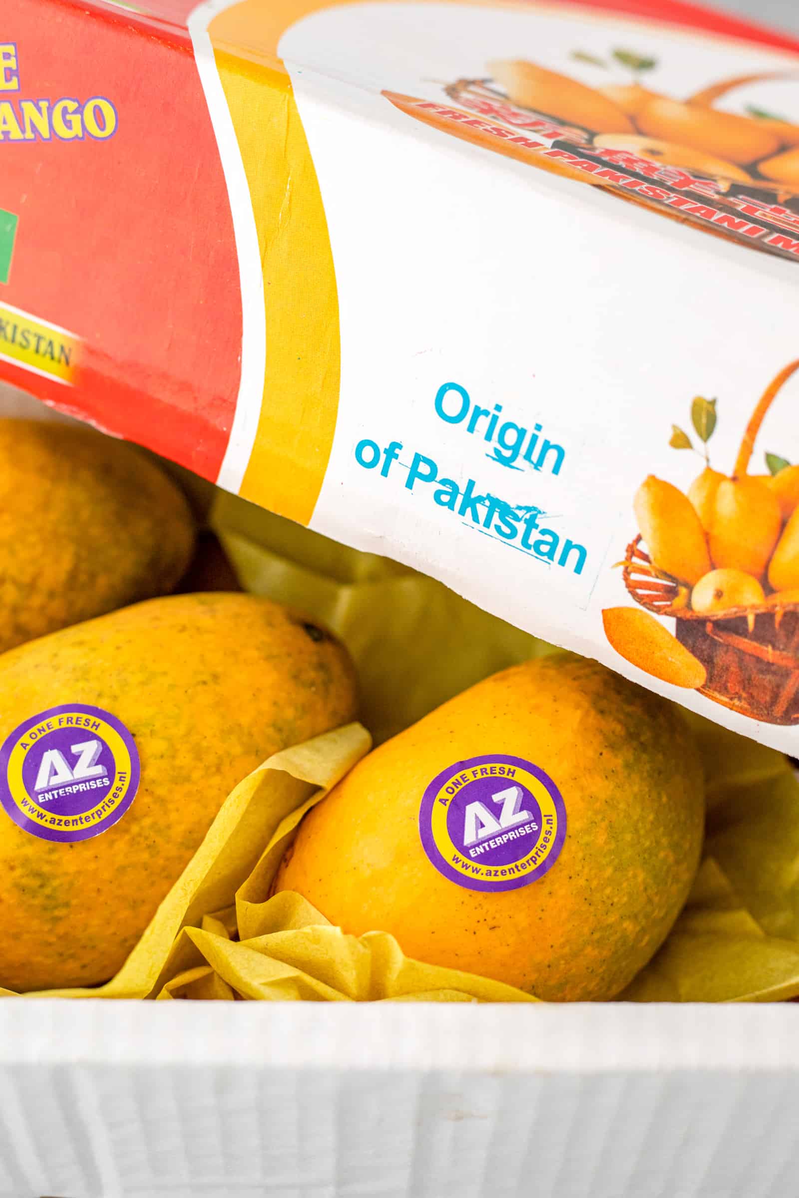En over die mango’s wil ik het eerst even met jullie hebben voordat we gaan blenden. Want kennen jullie de Pakistaanse mango’s al? Het was Jonneke van Mooncake (volgtip: check hier haar blog) die mij voor het eerst een Pakistaanse mango liet proeven tijdens haar foodtour (nog een tip, geweldig om te doen). Ik was gelijk om, wat een verschil met de mango’s zoals we ‘m hier veelal kennen. Extreem zoet, diepe smaak én geen vervelende sliertjes die tussen je tanden gaan zitten. Probleem is alleen een beetje dat je nooit meer anders wilt nadat je deze hebt geproefd, dus inmiddels bestel ik ze bij mijn toko of koop ze op markten (denk aan de Haagse Markt, Afrikaandermarkt, multiculturele markten dus).