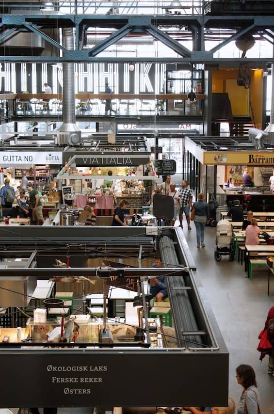 Tijdens ons bezoek aan de Noorse hoofdstad Oslo stond Mathallen bijzonder hoog op mijn verlanglijstje om te bezoeken. Mathallen is het ‘food court’ van Oslo. Een plek waar je heengaat als je houdt van goed eten. Waar de mooiste producten uit heel Noorwegen worden verkocht. Waar je koffie kunt drinken, boodschappen doet, luncht met collega’s of ’s avonds een hapje eet met vrienden. Zeg maar de Amsterdamse Foodhallen en Rotterdamse Markthal ineen, maar dan een volwassen uitvoering. Mathallen bestaat namelijk al bijna 10 jaar.