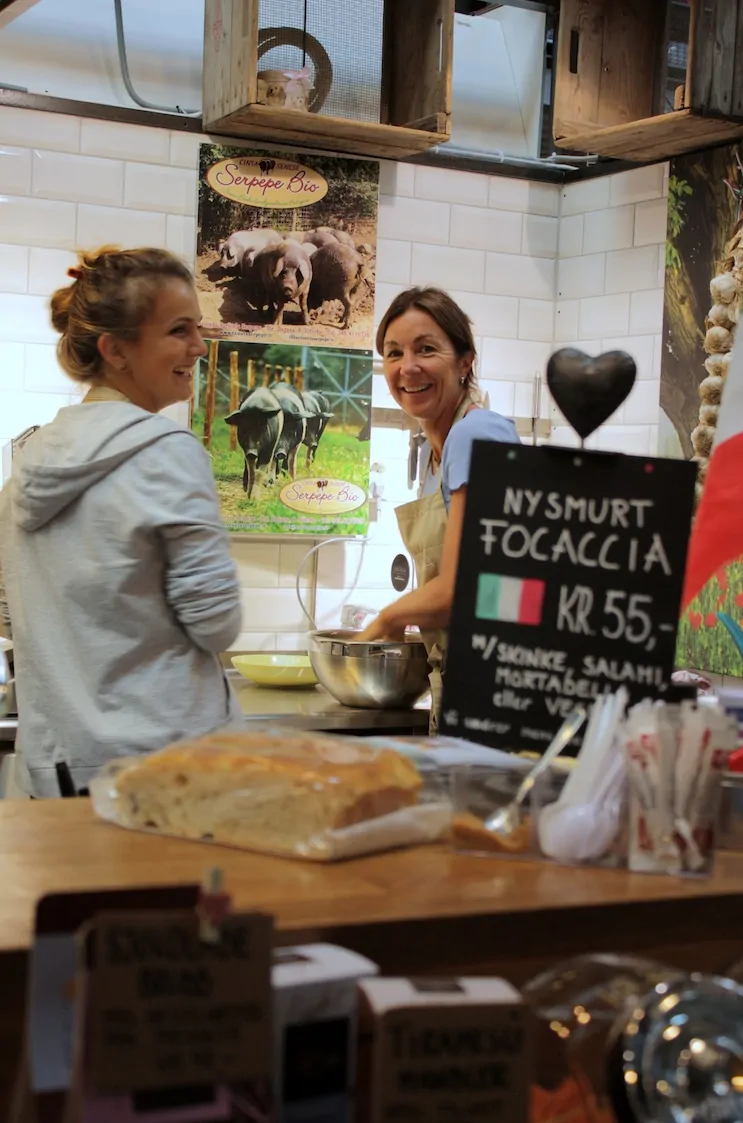 Ik heb afgesproken met oprichter Frode Malmo in de ochtend. Na een tramrit en een heerlijke wandeling in de zon, lopen we de straat van Mathallen in en kijken tegen een industrieel pand aan waar Mathallen in is gevestigd. Bij binnenkomst voel ik al een gelukzalig gevoel opkomen, hier ga ik heel blij worden.