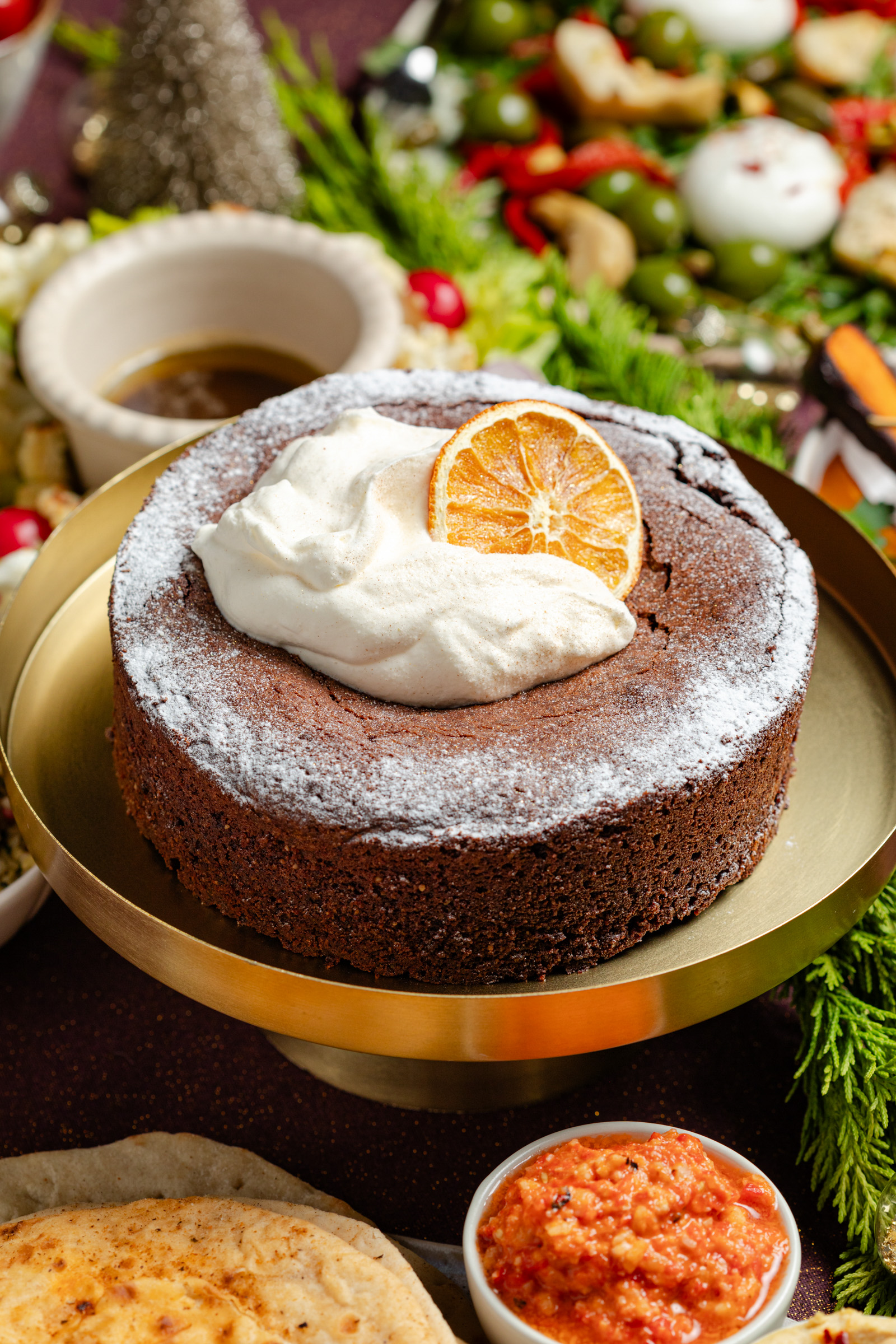 We eindigen dit Mediterraanse kerstmenu met een knaller van een taart! Ik maakte namelijk een torta caprese. Deze klassieke Italiaanse chocoladetaart maak je met alleen amandelmeel (en is dus glutenvrij) en is heel rijk van smaak. Ik voegde nog wat extra amandelextract en sinaasappel toe en dat was een schot in de roos. Serveer er een espresso of kopje Earl Grey (sinaasappel)thee bij en je Mediterraanse kerstmenu is geweldig afgesloten.