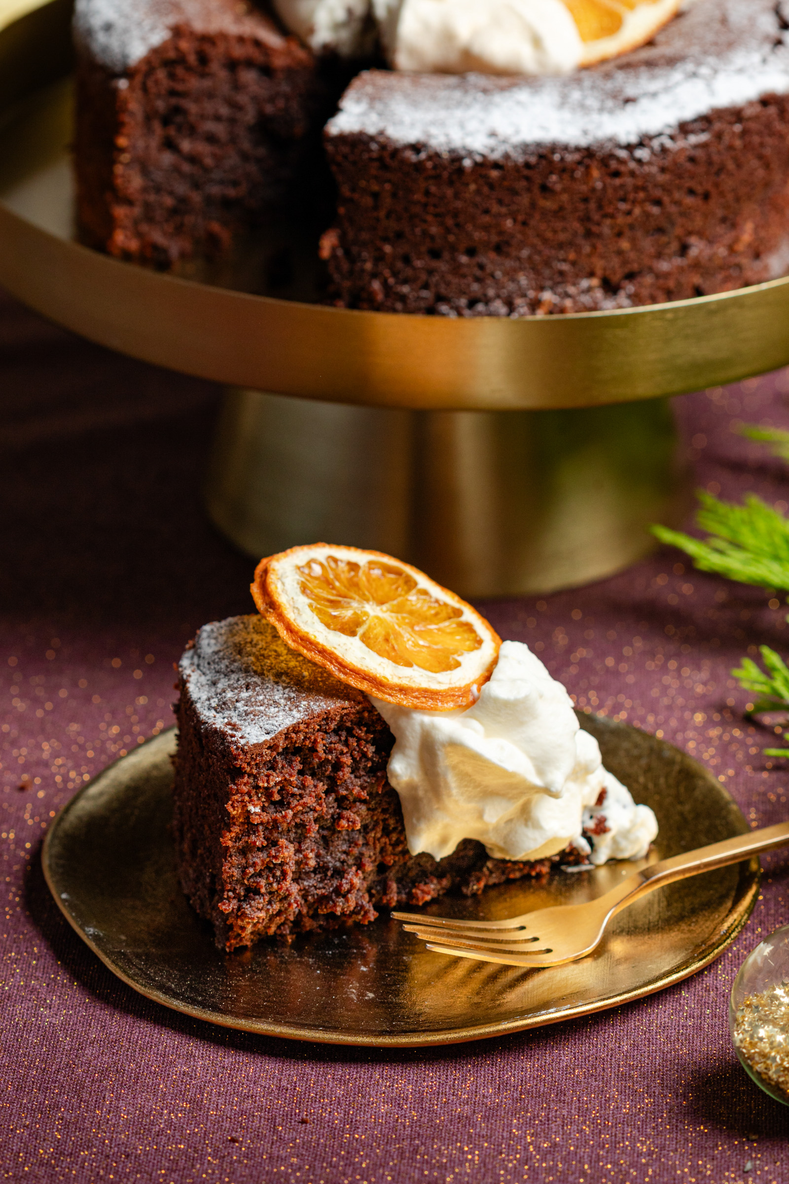 - Garneer vlak voor serveren met poedersuiker, de opgeklopte slagroom en garneer optioneel met een schijfje gedroogde sinaasappel of wat extra geraspte sinaasappelschil.