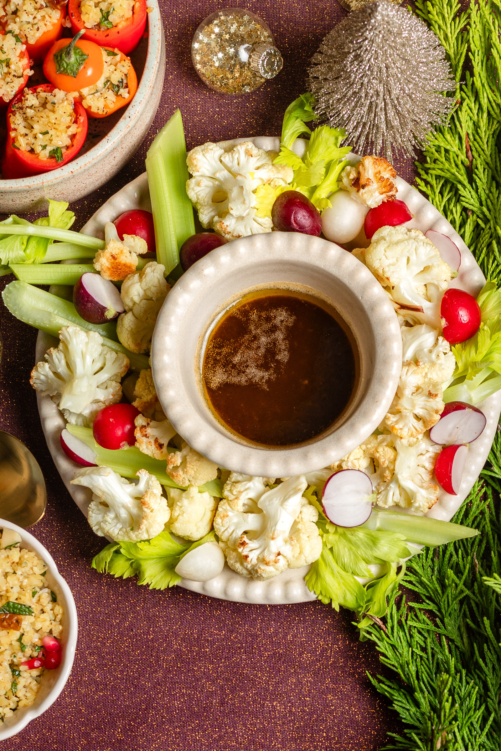 - Plaats rondom alle dipgroenten zodat iedereen zelf kan dippen.