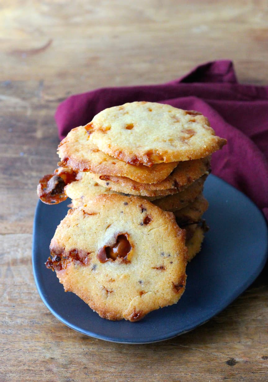 - Bak de koekjes in 10 – 15 minuten gaar (het midden mag nog een beetje zacht zijn). Eventueel in 2 delen als ze niet allemaal tegelijk in de oven passen. Laat de koekjes even afkoelen op een rekje en smullen maar.