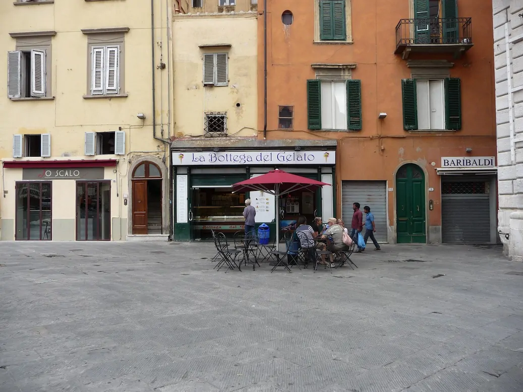 Als je dan langs de beste gellateria La Bottega del Gelato dan neemt men een ijs. Zeker als ze er pijnboompittenijs verkopen. Ook al ga je over vijf minuten lunchen 🙂