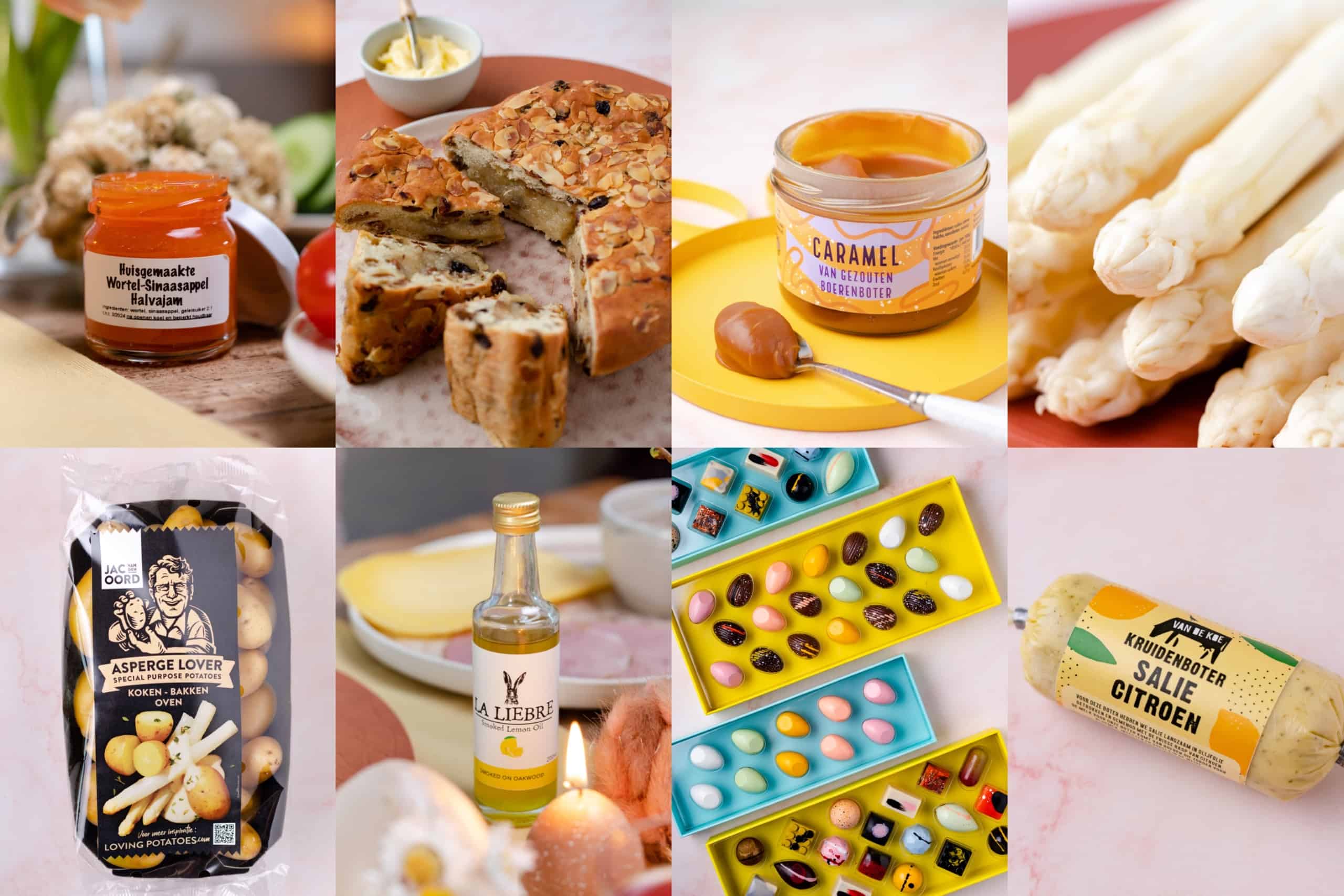 Het is bijna Pasen! En speciaal voor deze paasdagen heb ik een Zalige Paasbrunchbox samengesteld met allemaal producten van Nederlandse bodem. Naast de box is er nog tal van ander paaslekkers te bestellen. Van gevulde paaskip, beenham, Hollandse asperges, boerenboter met karamel, vlierbloesemsiroop tot wijn.