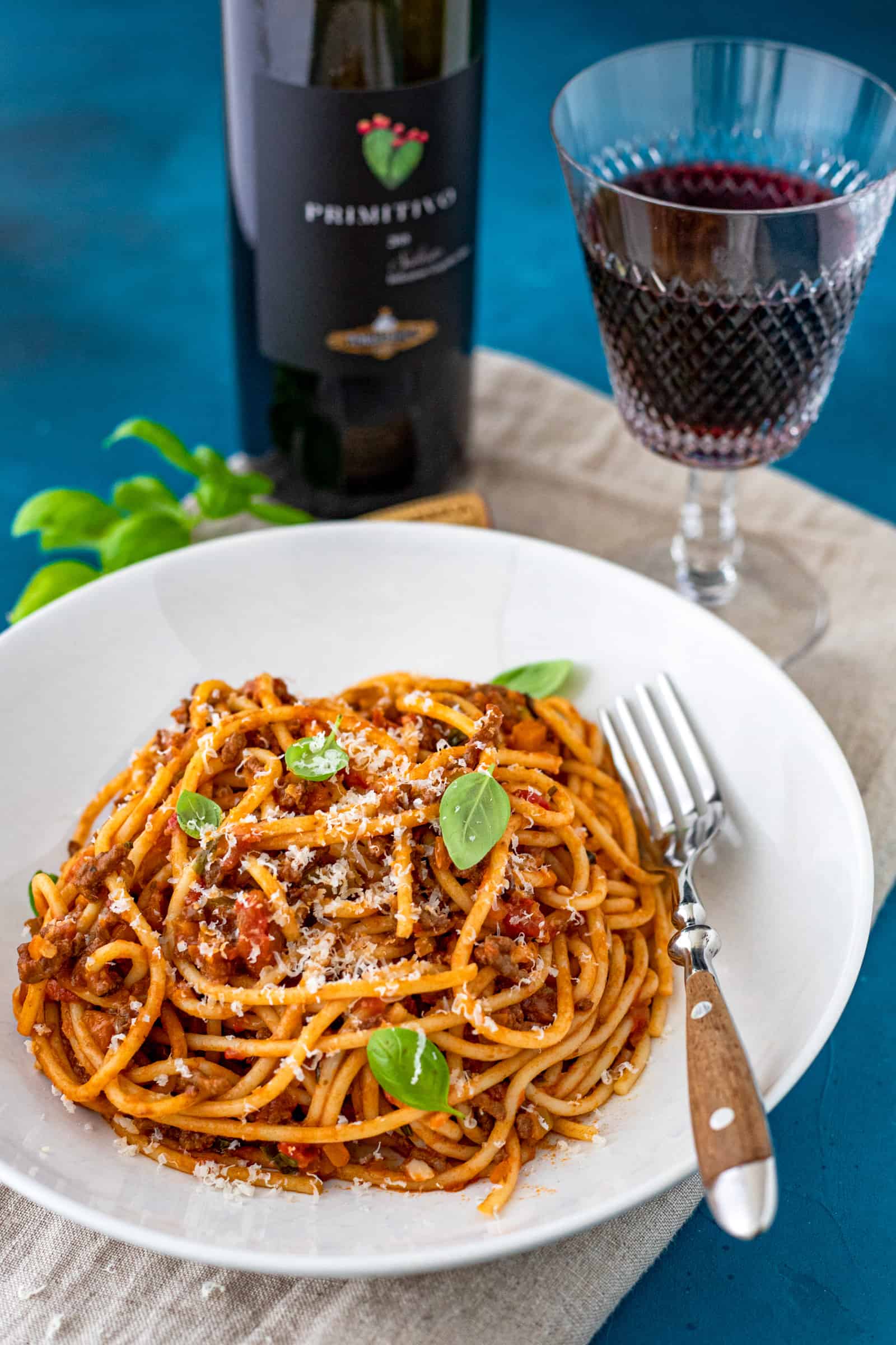 - Ik vind ‘m zelf het allerlekkerst na een uurtje of 5, maar als je wilt kun je al eerder eten. Roer 15 minuten voor tijd de fijngehakte basilicum door de saus en kook je pasta al dente. Schep de gewenste hoeveelheid bolognesesaus door je gekookte pasta en hussel door elkaar voordat je gaat serveren. Want er is één ding wat in mijn keuken ook echt verboden is en dat is pastasaus los (dus zo’n schep bovenop je gekookte pasta) serveren op het bord. Zo heeft echt nog nooit een Italiaan z’n pasta gegeten en lekkerder wordt het er ook niet van. Dus altijd eerst mengen, dan pas serveren ;-).