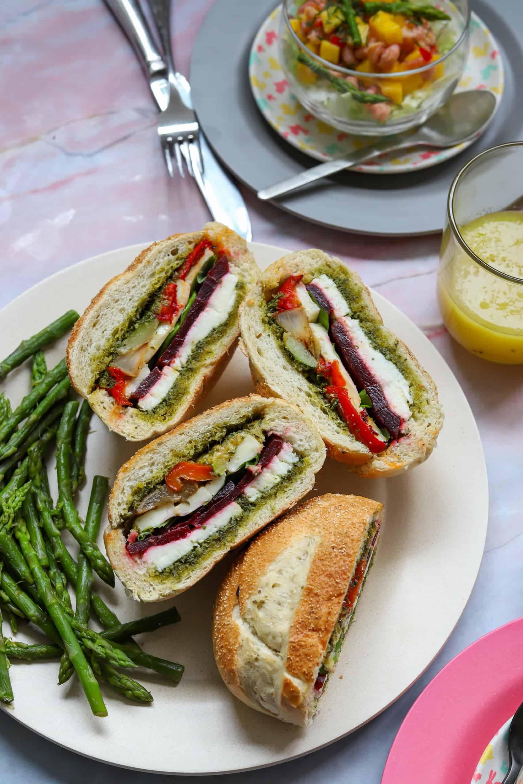 Recept 1: Italiaanse bollen met pesto, geroosterde groenten, mozzarella en biet