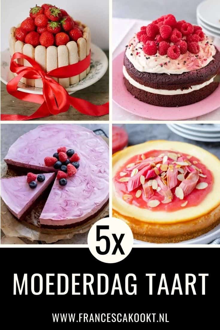 Ben je niet zo’n geoefende bakker? Ga dan voor de chocoladetaart met frambozenmousse of de ricotta cheesecake. Die je met de rabarbertopping kunt maken, maar ook ‘gewoon’ met vers rood fruit in combinatie met een lekkere jam. Ach, uiteindelijk zijn ze allemaal niet heel moeilijk om te maken, je moet er alleen wat tijd voor nemen en dan komt het allemaal goed met het moederdagtaart maken!
