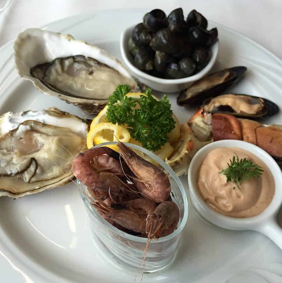 We starten onze Zondagse lunch met een Zeeuws peuzelbordje. Daarop verse oesters, rauwe mosselen, garnaaltjes, kreukels en een krabbenpoot. Verser kan haast niet. Heerlijk met een zelfgemaakte cocktailsaus om te dippen.