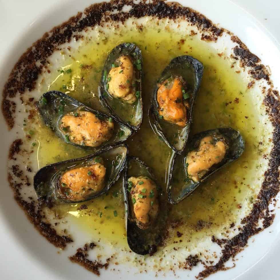 Het wordt alleen maar beter, want als tussengerecht krijgen we gegratineerde mosselen. Simpel, perfect bereid en met een ultieme smaak. We kijken elkaar gelukzalig aan.