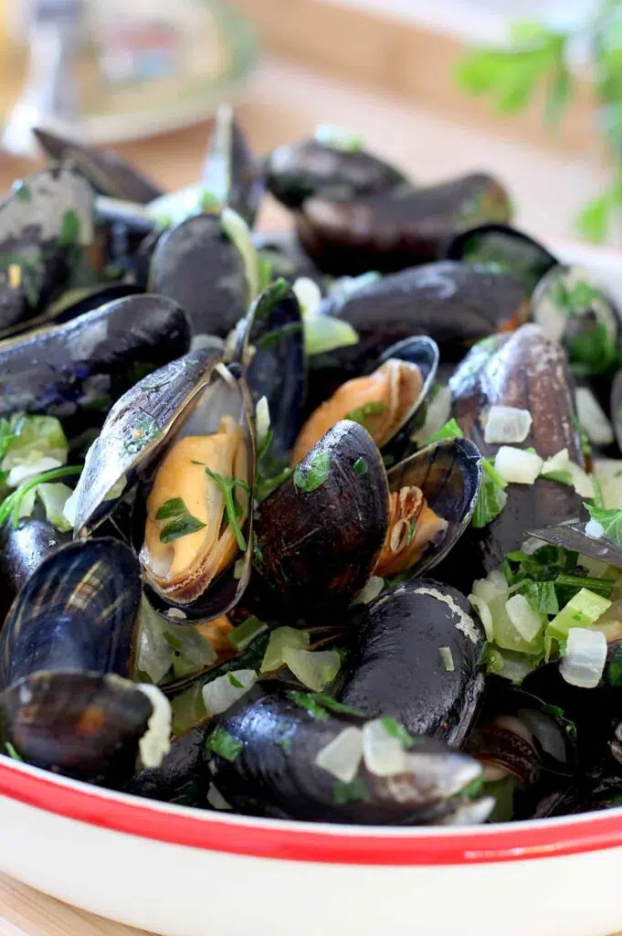 - Serveer de mosselen in het kookvocht met brood of friet en goede mayonaise.