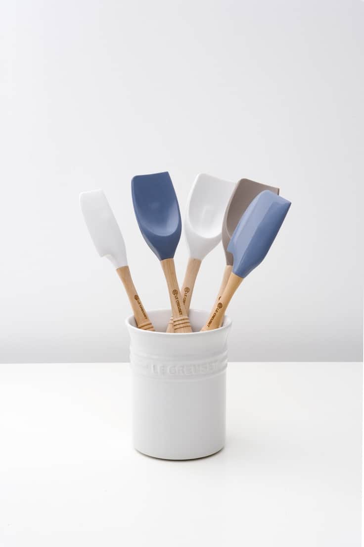 Of deze super handige spatels van silicone. Daar kun je alles mee roeren of schrapen en heel praktisch is dat je de kop eraf kunt halen voor in de vaatwasser.