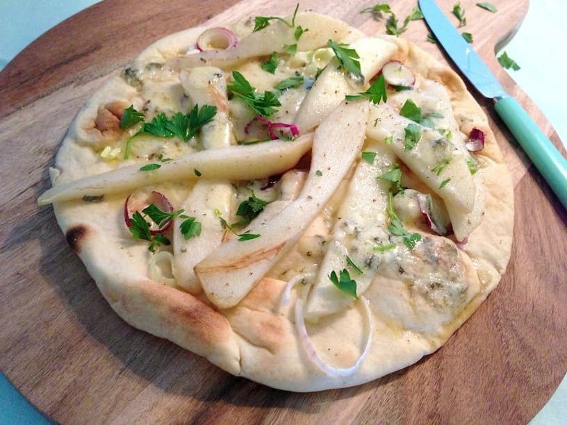 Wij zijn dol op naan thuis. Vroeger kochten we het altijd, maar sinds ik weet dat je ze zelf heel makkelijk kunt maken, wordt het alleen nog maar homemade gemaakt. En het mooie is dat je ze gewoon kunt invriezen waardoor je er ook van kunt genieten als je minder tijd hebt. En met naan kwam er ook een nieuwe verslaving bij. Namelijk naanpizza. Beleg met je favoriete ingredienten, even in de oven en je supersnelle naanpizza is klaar. Zoals bijvoorbeeld deze naan met peer en gorgonzola, een geweldige combi!