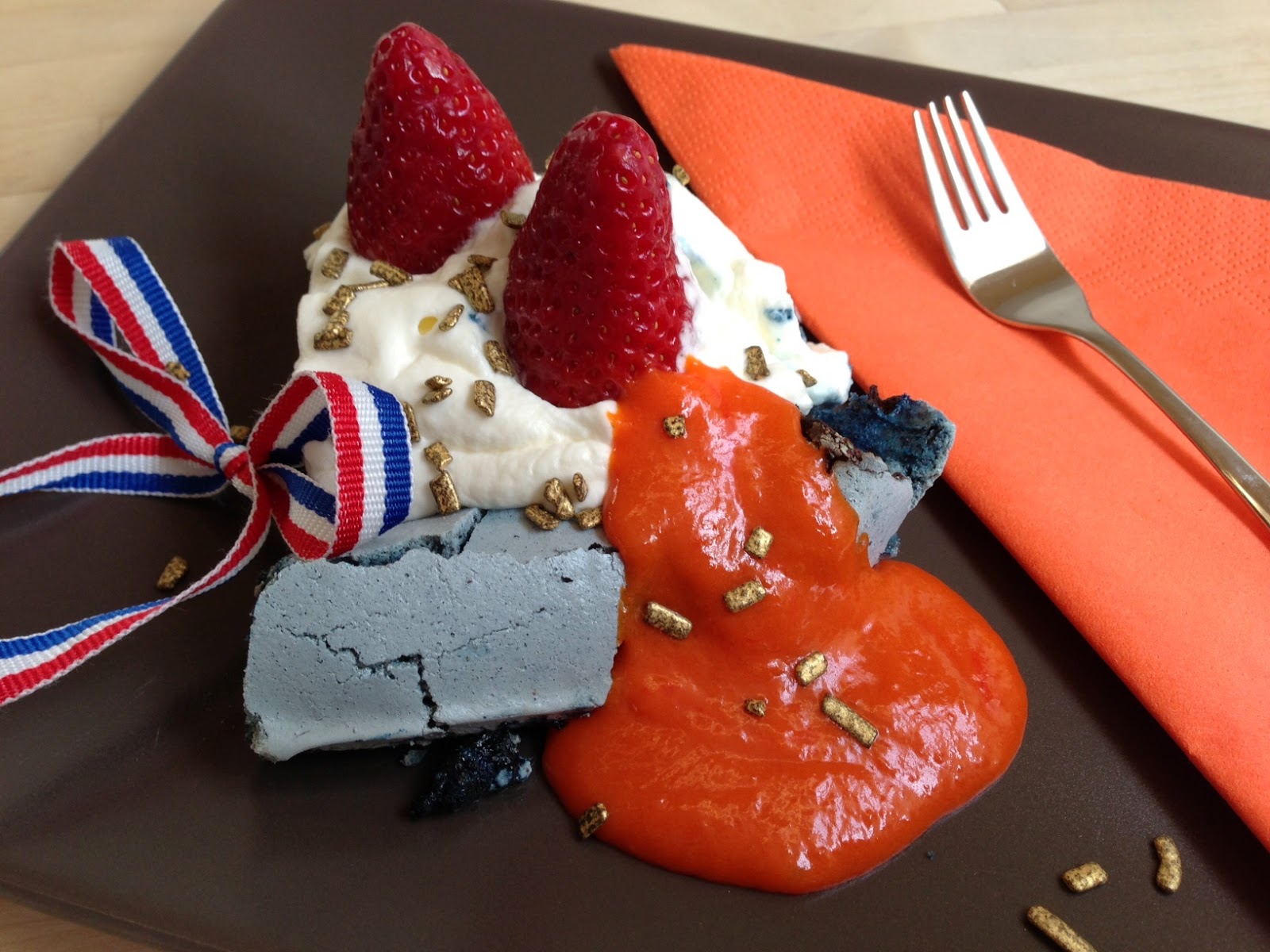 p.s. eigenlijk wilden we iets heel anders maken voor de Koningin, namelijk rood-wit-blauwe macarons. Maar na 3 batches mislukte macarons waren we er zo klaar mee dat we zijn uitgeweken naar deze pavlova. Volledig geïmproviseerd. En als ik eerlijk ben, verre van een slechte keuze! De macarons waren mislukt door de toevoeging van de kleurstof. We zijn hier research naar aan het doen en hier komen we op terug! Met foto’s en verhalen van de mislukkingen, beloofd 🙂