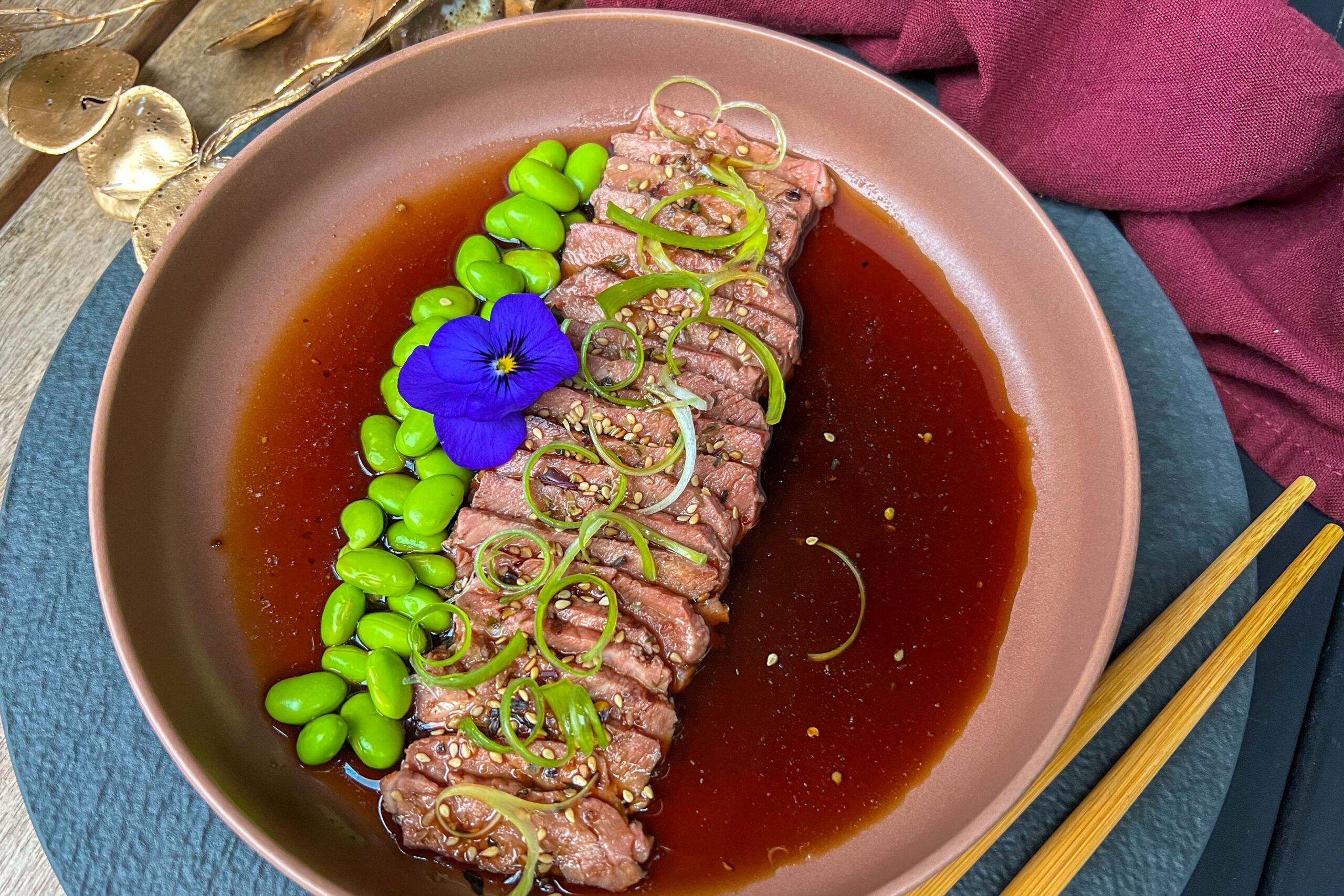 - Tussengerecht: Beef tataki met ponzudressing en sojabonen