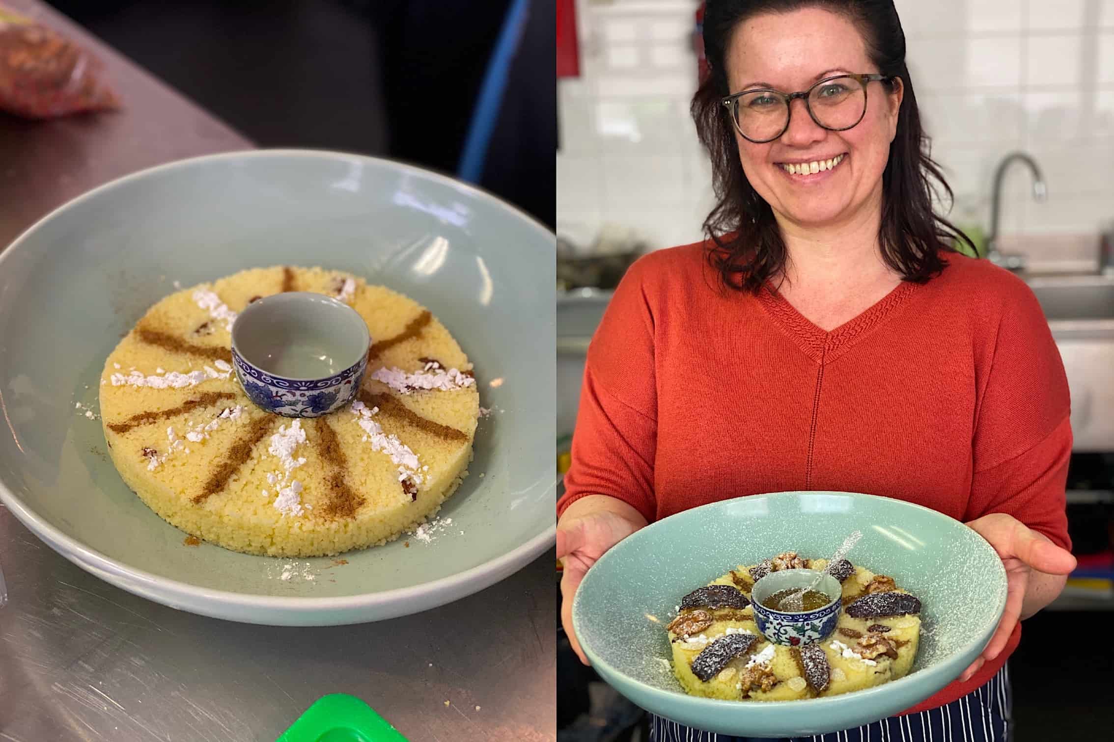 Wat we ook nog maakten was een toetje met een deel van de gestoomde couscous. Hoe je dat maakt, vertel ik je aan het einde van dit artikel. Daarmee maak je er pas echt een Marokkaans feestmaal van!