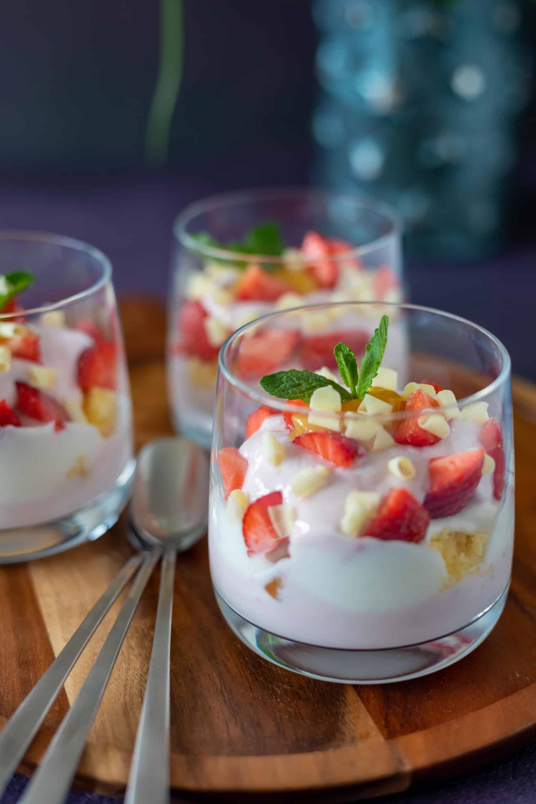 Vandaag staat er een heerlijk verwenontbijt op het menu! Het ziet eruit als een toetje, maar is toch echt een ontbijt! Deze ontbijt trifle met kwark, aardbeien, cake en witte chocolade is het perfecte moederdagontbijt dat ook nog eens super makkelijk te maken. Zo makkelijk zelfs dat kinderen het ook gewoon kunnen bereiden in de keuken, al dan niet met een klein beetje hulp ;-). Laat mama er maar van genieten, of geniet er lekker zelf van.