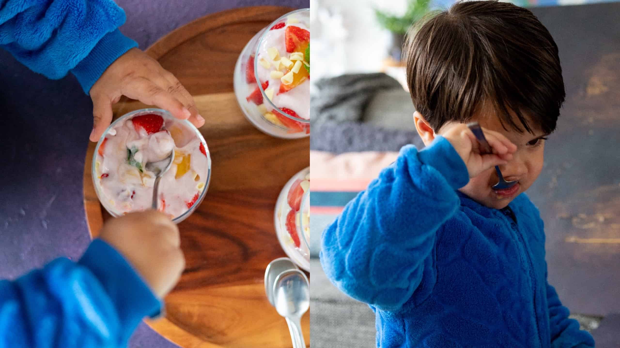In 5 minuten ben je klaar en het smaakt waanzinnig. Zo lekker zelfs dat de kleinste telg uit de familie er niet vanaf kon blijven tijdens de fotoshoot ♥. Geniet ervan!