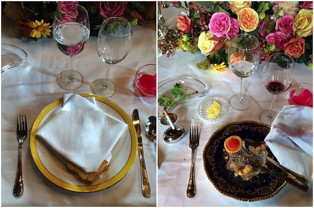 Wat deed een plassende vis in de japon van de barones? Wat zei een tafelbediende in plat Utrechts tegen een lid van het Koninklijk Huis? In welk dessert zat 80 kilo suiker verwerkt? Wat doet een geluidsfragment uit de keuken van de Franse drie Michelinsterren Chef Paul Bocuse in de kasteelkeuken? Welke pillen verstopten deftige diva’s onder de rand van hun bord? Waar verstopte de Maître zijn borrel? Hoe voorkwam Roger Moore gezichtsverlies toen hij een hele kip aan zijn vergulde vork had hangen?