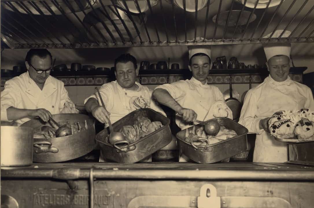 Tot 1970 kookten de koks in de oude keuken op een kolenfornuis uit 1895. Om het fornuis te reinigen was personeel in 1904, precies 100 jaar geleden, ruim 17 dagen bezig. Per dag stookte men 50 kilo kolen op. In de oven werd het wel 200 graden, in de keuken zelf werd het wel 40 graden. Er werd gekookt met ruim 100 koperen pannen, een ‘Batterie de Cuisine’ uit 1890, die uniek is in Nederland.