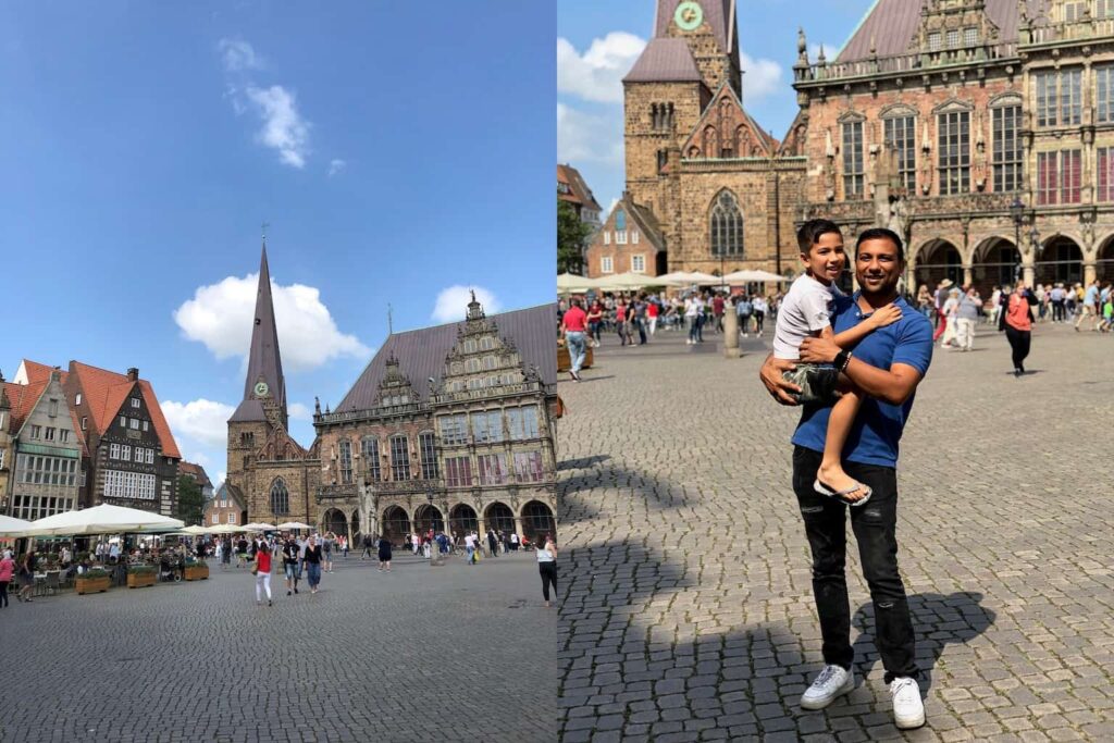 Via een klein steegje kom je direct in het centrum van Wildeshausen waar je kunt winkelen (maar stel je daar niet teveel bij voor), maar vooral lekker kunt eten! Er zijn veel terrasjes, er zit een fantastische bakker waar je ook kunt ontbijten en als je de andere kant op loopt (via het park rondom de kerk) kom je bij nog een heel fijn restaurant. Het is ook een prima uitvalsbasis voor dagtrips naar Bremen of Oldenburg. Nou was ik in Oldenburg al een keer geweest (tip voor een leuke kerstmarkt trouwens, lees hier maar), maar in Bremen nog nooit. Dus daar zijn we een dagje geweest, super leuk!