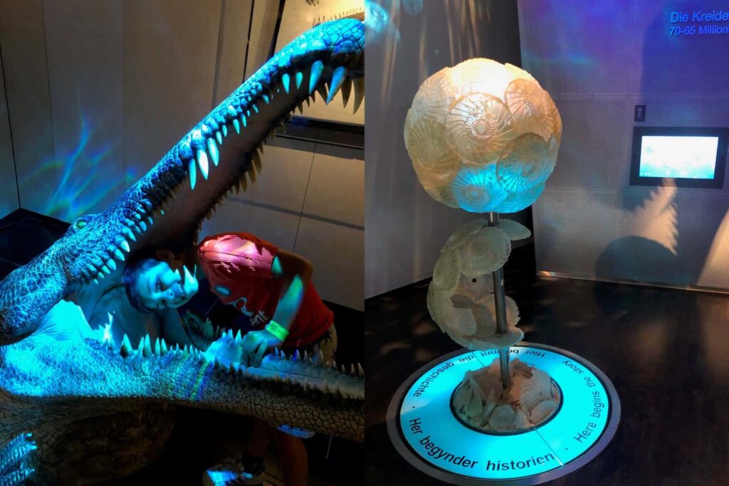 – Met stip op nummer 1: een bezoek aan Geocenter Møns Klint! Hier daal je de 500 treden tellende trap af naar beneden langs de beroemde krijtrotsen van Møn, en alleen dat is al een prachtige ervaring. Eenmaal beneden aangekomen wandel je rustig over het strand, zit je met je voetjes in het water en geniet je van de indrukwekkende kracht van de natuur en als je mazzel hebt kun je zelfs nog fossielen vinden. En verzamel je energie om die 500 treden weer omhoog te gaan. Alhoewel dat bij mijn kind een stuk makkelijker ging dan bij mij, haha. In het Geocenter zelf leer je alles over de bijzonder historie van de krijtrosten die 70 miljoen jaar terug gaat in de tijd. En dat is verre van saai, Jessey vond het hier geweldig! En het boomklimmen wat ook inbegrepen was in de prijs zal daar vast iets mee te maken hebben gehad. Wat ik er niet goed vond was het eten. Te duur voor wat je krijgt en niet echt smakelijk. Ik zou je adviseren om een rugzak met lekkere dingen mee te nemen en dan rustig beneden op het strand te picknicken na de afdaling. Een mooiere plek om te picknicken ga je niet snel vinden! De tickets voor het Geocenter hebben we geboekt bij Dansk.