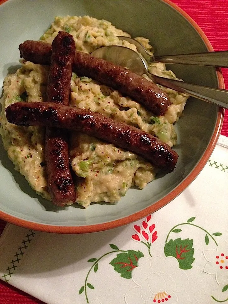 Serveer de stamppot met gebakken worstjes. En wil je nog meer pit? Strooi dan wat gemalen chili erover.