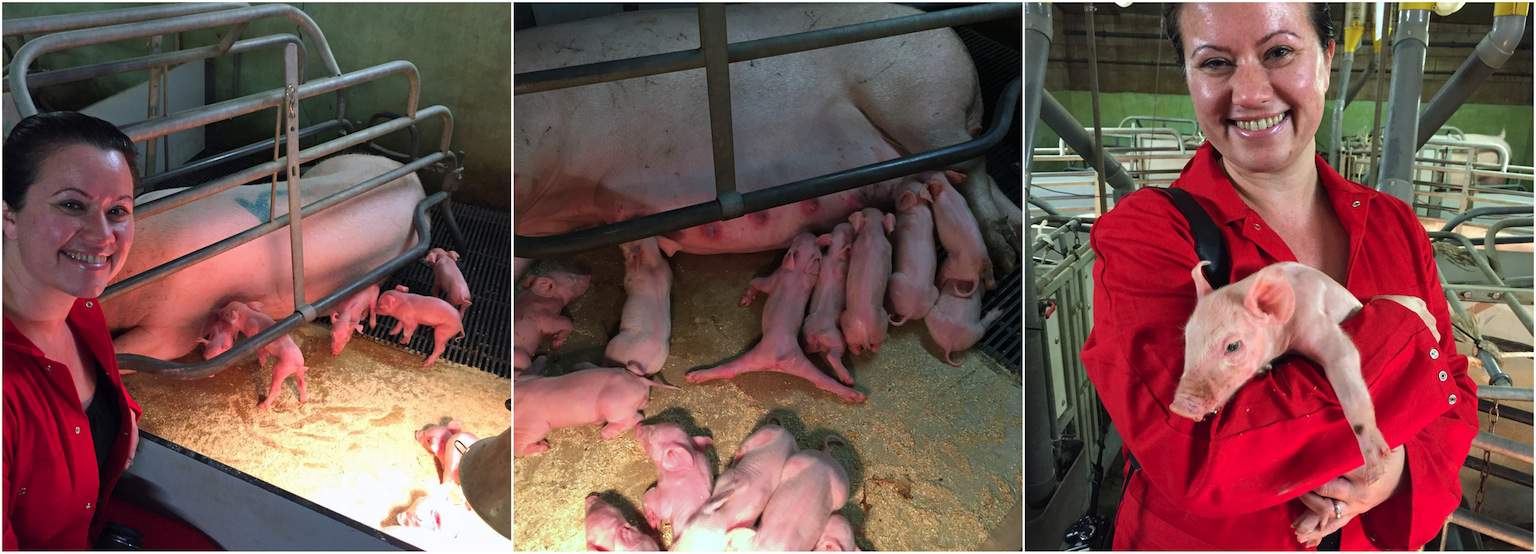 Michel leidt me trots rond op de locatie van de zeugen en ik ben onder de indruk van het bedrijf. Veel is er geautomatiseerd waardoor Michel vrijwel alleen (met af en toe wat hulp) zorg kan dragen voor zijn zeugen. Als er biggetjes geboren worden is hij er altijd bij, hij laat de natuur de loop maar springt wel in als het nodig is. Zo legt hij een biggetje altijd op de verwarmde bodemplaat zodat ze het lekker warm houden.