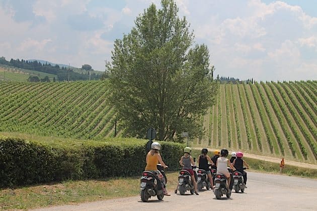 Tussen de prachtige Sangiovese wijngaarden en uitgestrekte velden met olijfbomen door, trok niet zo lang geleden een toch wel behoorlijk onhandige (maar wel ontzettend dappere) colonne scooternieuwelingen.