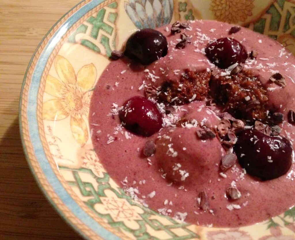 In de categorie ‘lekker gezond snoepen’ heb ik nu wel weer een heel fijn toetje voor jullie gevonden! Eigenlijk is het een soort dikke milkshake. Maar hoe minder kokosmelk hoe dikker het wordt en hoe meer het op een toetje gaat lijken. De dadel balletjes kun je makkelijk van te