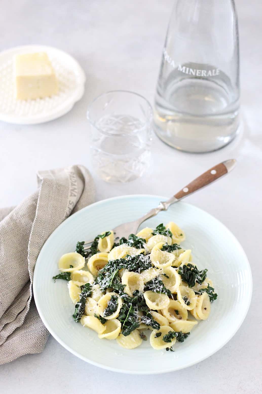 Je kunt het aan Italianen wel overlaten om met minimale ingrediënten een fantastisch gerecht te maken. Ze zorgen er dan wel voor dat die ingrediënten van perfecte kwaliteit zijn. Eén van de belangrijkste onderdelen van de Italiaanse keuken is natuurlijk pasta van hoogwaardige kwaliteit. Als je de pasta op de juiste manier kookt (al dente) heb je de perfecte basis voor een zalig pastagerecht. Zoals bijvoorbeeld deze orecchiette cacio e pepe con cavolo nero, die ik maakte met de ‘oortjespasta’ van Barilla. Mijn recept is gebaseerd op de Romeinse klassieker waarbij ze alleen pasta, kaas en zwarte peper gebruiken. Het resultaat is waanzinnig van smaak.