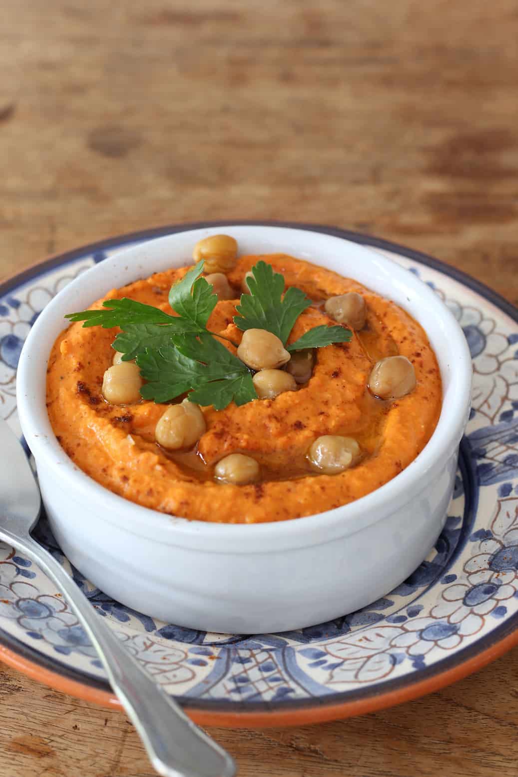 Wat doe je als je nog een halve pot geroosterde paprika in de koelkast hebt staan? Dan kun je ze in reepjes snijden en in een salade of op een broodje verwerken. Of je maakt er deze zalige paprikahummus mee. Ook lekker in een salade of op een broodje en vooral ook in combinatie met wraps. Daarvoor krijgen jullie volgende week een recept, maar vandaag eerst dus maar eens het recept van de hummus zelf. Dat wordt genieten, zeker als je van geroosterde paprika houdt.