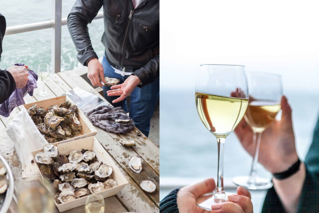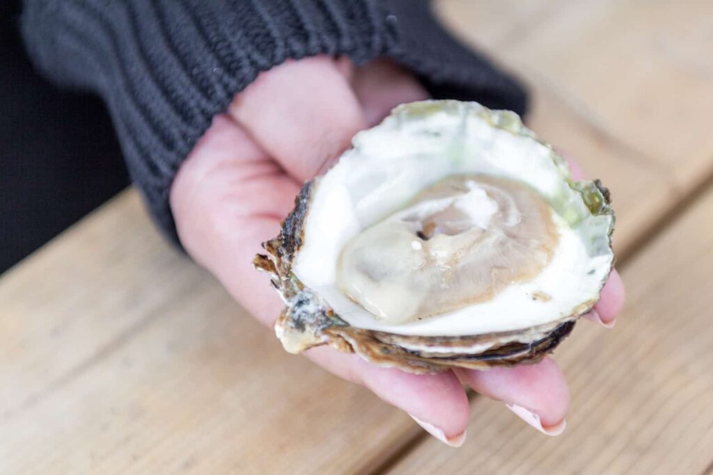 We beginnen onze dag op een oesterboot met wijn en uiteraard oesters. We vinden er zelfs nog een met EEN ECHTE PAREL. I love my job.
