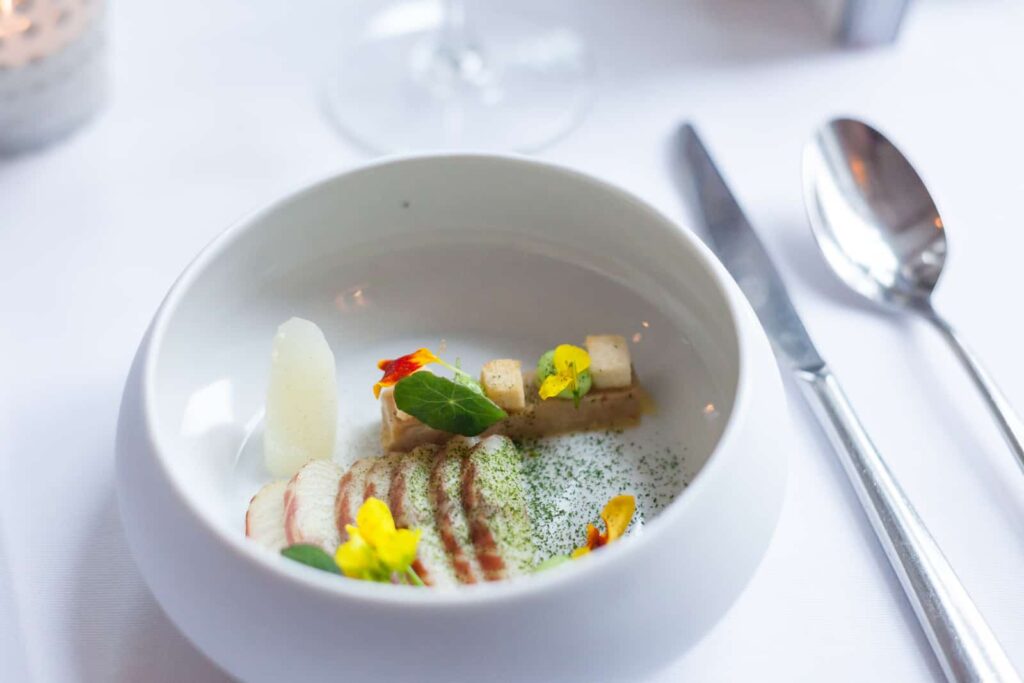Op de boot komen ook de eerste gerechten voorbij, allemaal signature dishes van ‘onze’ chefs. Een aantal van hun staan heel (HEEL) hoog op mijn ‘nog-te-bezoeken’ lijstje, dus ja. Ik ben redelijk hysterisch deze dag.