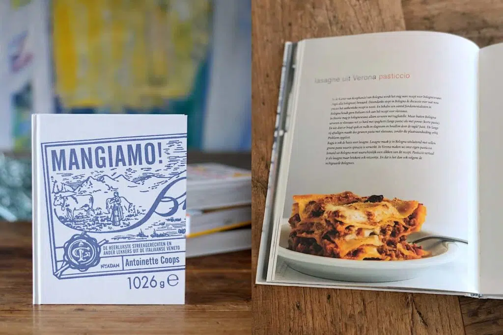 Haar nieuwe boek Mangiamo! is een lust voor het oog. Door de vormgeving, fotografie van Marleen van Es, maar bovenal door de recepten die ‘meravigliosa’ (of meraviglioso, maar echt goed in Italiaanse grammatica ben ik nooit geweest) zijn. Er is werkelijk waar niets in het boek te vinden wat ik niet zou willen eten. Het was dan ook een slagveld tijdens het maken van een receptkeuze om uit te proberen. Mijn oog viel uiteindelijk op ‘pasticcio’, de lasagne uit Verona die ik me nog zo goed kan herinneren uit mijn jeugd. Een smaakvollere lasagne als deze heb ik echter nog nooit gegeten, waanzinnig. Het is even een klusje, maar dan heb je wel een schaal vol waar 6 – 8 mensen van kunnen eten. En porties die je over hebt, vries je gewoon in. Of je blijft er gewoon van eten zoals wij ook deden.