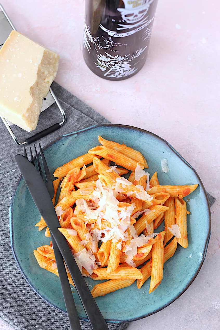 Liefhebbers van de Italiaanse keuken hebben vast eens het recept van ‘penne alla vodka’ voorbij zien komen. Pasta met een romige saus van wodka en tomaat waar je direct je tanden in wilt zetten. Ik wilde deze maken voor jullie, en voor mezelf, maar vond in mijn drankkastje alleen maar flessen gin. En niet de minste flessen ook trouwens, zoals de Gin & Jonnie van Jonnie de Boer en Distilleerderij Onder de Boompjes.