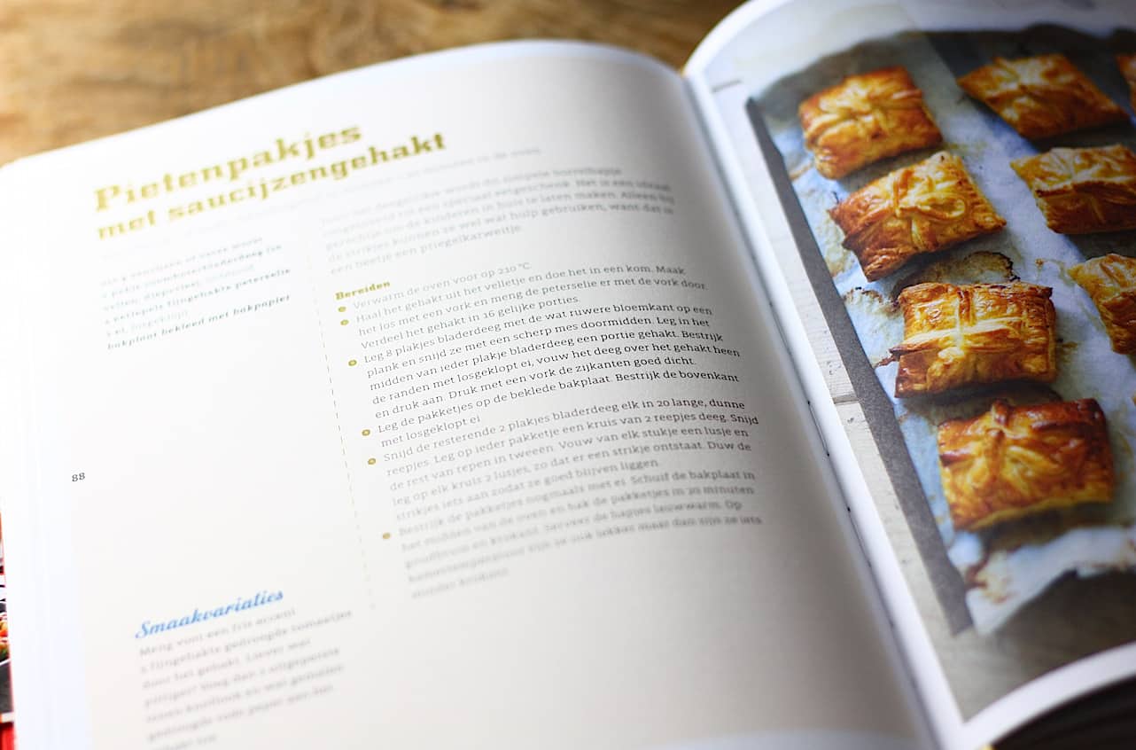 In het boek vind je de hoofdstukken Voorpret, Ingepakt, Heerlijk avondje en Nagenieten. In Voorpret vind je knutsels en recepten voor het moment dat Sinterklaas in het land komt. Van een aftelkalender, schoencadeautjes, marsepeinen varkentjes tot chocoladeletters. Veel creatieve recepten die ook heel leuk zijn om te maken samen met de kids. In Ingepakt vind je recepten die je kunt…inpakken dus. Want niet alleen cadeautjes verdienen een mooie verpakking. Wat denk je bijvoorbeeld van pietenzakjes met pompoen en geitenkaas, boerenkoolsigaren en kleine saucijzenpakjes?