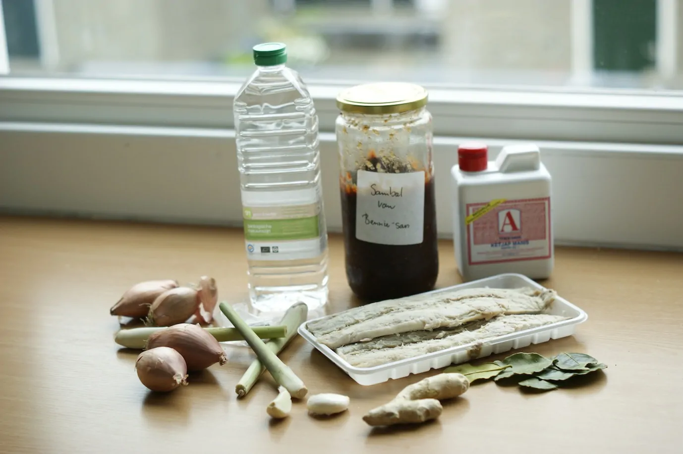 Dit gerecht heet in Indonesië Pepesan Ikan en is een heerlijke combinatie van gerookte makreel met veel sambal en typisch Indische smaken. Als je van pittig eten en makreel houdt, moet je dit echt een keer proberen. Je stoomt de gerookte markeel samen met de boemboe – die je in een mum van tijd zelf maakt – in een aluminiumpakketje in de oven tot de vis heerlijk mals is en alle smaken van de boemboe heeft opgenomen.