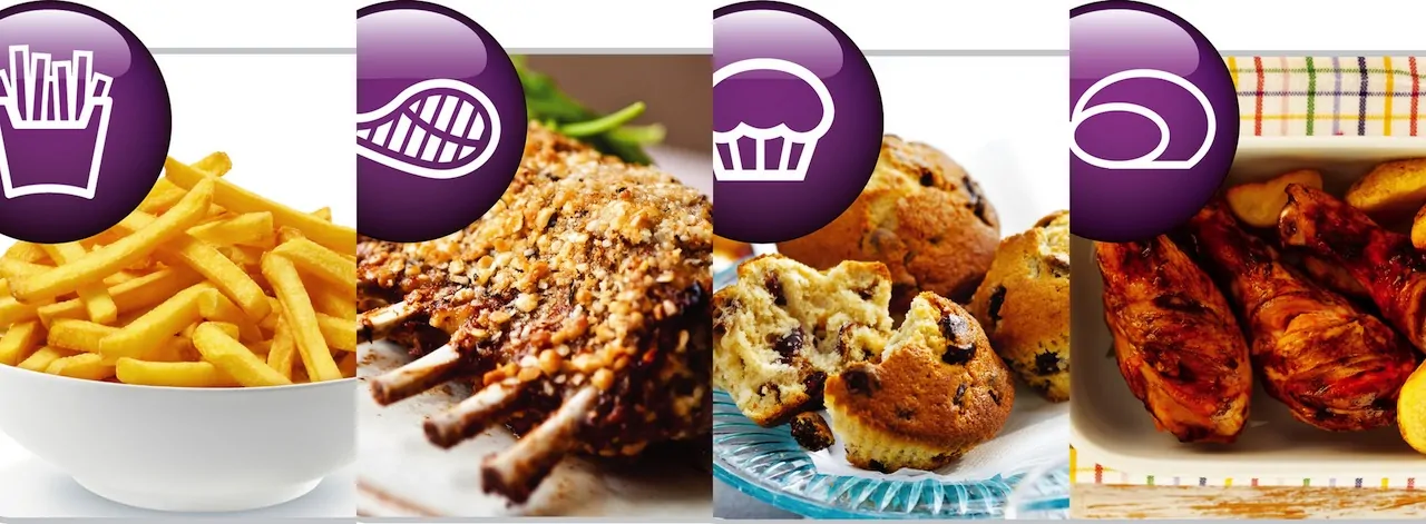 Roosteren, dat kan ie ook. Spareribs of een stuk vlees erin en gaan! Of heb je zin in muffins of een appeltaart, zelfs dat kan in de Airfryer.