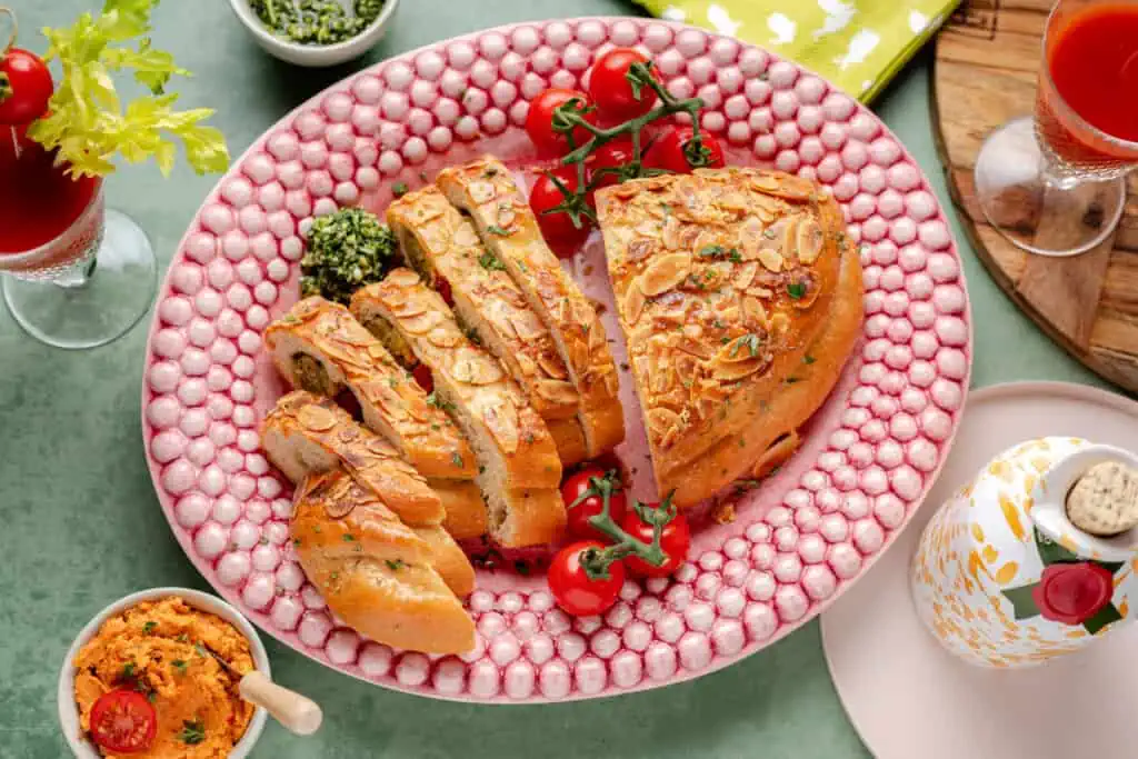 - Dek de picknick sandwiches af met de kapjes van de focaccia en snijd ze schuin doormidden, als een triangel.